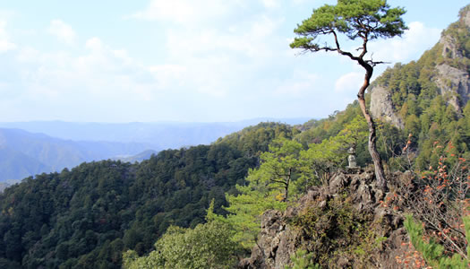 ”仏法僧”と鳴く鳥の声が聞かれる鳳来寺山は、東三河平野を隔て三河湾を望む事が出来る山です。火山活動の名残で、現在は険しい岩山となっています。古くから信仰の対象とされており、多くの伝説や文学作品が生まれています。